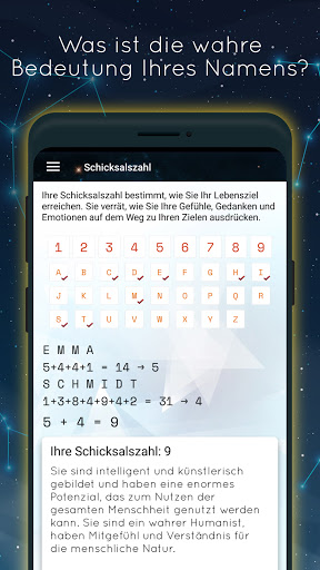 Das Numeroskop bietet kostenlose numerologische Berichte, Zahlenbedeutungen und Prognosen. Es ist eine kostenlose App und die Werbeanzeigen können gegen eine geringe Gebühr entfernt werden.