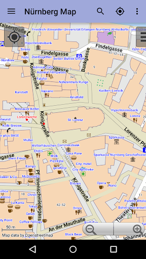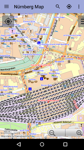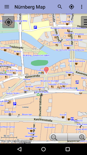 Mit dieser App haben Sie den Stadtplan von Nürnberg immer in der Hosentasche! In erster Linie bietet sie eine interaktive Karte auf der Sie auch bis ins kleinste Detail hineinzoomen können. Dazu gibt es noch einen Suchindex, in dem Sie natürlich alle Straßen finden, aber auch Museen, Restaurants, Cafés, Hotels, Sehenswürdigkeiten und vieles mehr. Nach dem Installieren wird keine Internetverbindung mehr benötigt, weder um die Karte anzusehen noch um die Suchfunktion zu nutzen. Dadurch baut die Karte sich zuverlässig schnell auf, Sie schonen Ihr Datenvolumen und falls Sie als Tourist ganz ohne Internet unterwegs sein sollten, funktioniert diese App auch unterwegs unabhängig von einer WLAN-Verbindung.