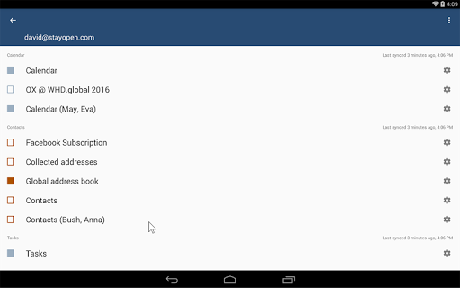 OX Sync App synchronisiert Termine, Aufgaben und Kontakte zwischen OX App Suite und Android Geräten. Die App läuft unsichtbar im Hintergrund.