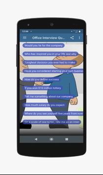 Office Interview Question Answer App Helps to Prepare For Office Interview Exam. This app helps to get best job of your dreams. Candidate when apply for job interview he would be asked such questions that are present in this app. So prepare this question for an interview exam. Candidate who qualify interview exam will get their dream job. App has all the questions that are asked in the interview exam. This will guide you for an interview.