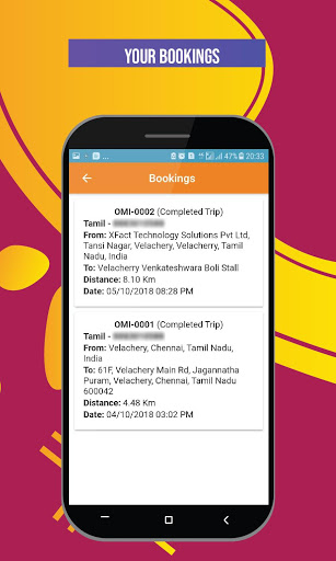 Die OMI-Treiber-App wird verwendet, um die Buchung vom Kunden zu erhalten und wieder zu buchen, indem Sie die Ladung anfangen, die Buchung abzugeben