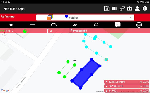 Die sehr einfach zu erlernende App On2go verarbeitet Satellitendaten von GPS, Glonass, Galileo und Beidou für Positionierungen mit cm-Genauigkeit (RTK) und ist somit für viele Anwendungen bei Vermessungen für jedermann geeignet.