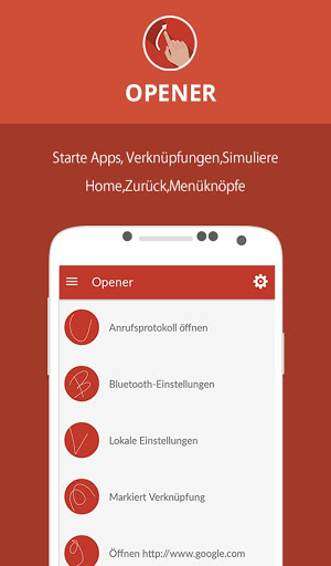 Opener ist eine einfache, schnelle und zuverlässige App, die so funktioniert wie Sie es wollen. Eine simple Geste auf dem Heimbildschirm lässt sie mit der Opener App andere installierte Apps öffnen. Sie brauchen keine Verknüpfungen, da Opener auf all ihre Anwendungen direkt zugreift. Dadurch kann man jeder auf dem Handy befindliche App mit einer Geste auf dem Heimbildschirm starten.