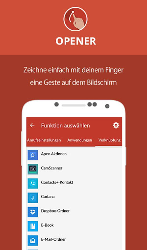 Opener bringt Sie zur App ihrer Wahl mit ihrer vorher ausgewählten Geste.