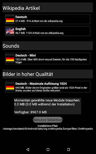 - Offline Wikipedia Artikel für alle Vögel ( 3-50 MB, je nach Sprache)