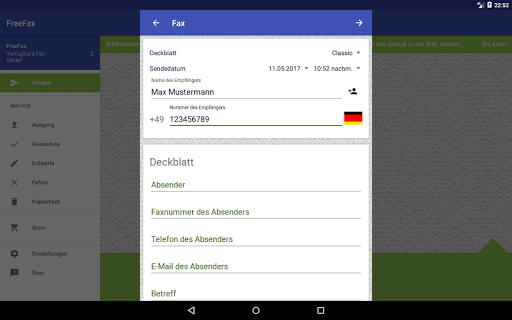 FreeFax von FAX.de macht aus Ihrem Android ein Faxgerät. Senden Sie ein Dokument kostenlos in bis zu 50 Länder weltweit – ohne Registrierung. Einfach installieren und loslegen. FreeFax funktioniert kostenlos für 1 Seite pro Tag. Wenn Sie mehr als eine Seite versenden wollen, können Sie innerhalb der App ein Guthaben sehr günstig aufladen.