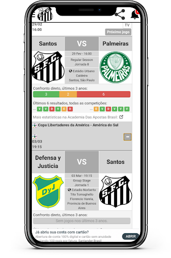 Informationen in der Hand von Santos!Für Liebhaber des guten Fußballs, jetzt die beste und überraschendste App. Team