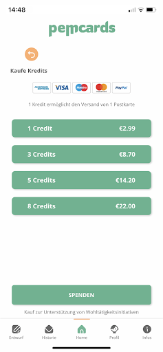 - Kaufen Sie das Versandguthaben direkt in der App oder verwenden Sie einen Geschenkcode.