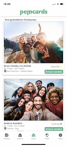 Lassen Sie Ihrer Kreativität freien Lauf: Nehmen Sie Ihre Lieblingsfotos auf oder laden Sie sie hoch, fügen Sie personalisierte Nachrichten hinzu und senden Sie Ihre Postkarten.