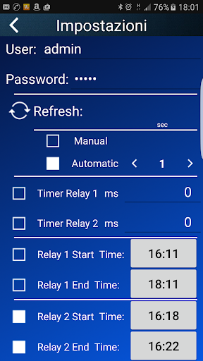 This program allows you to remote control a webserver via Ethernet port that is equipped with 2 relays (KMTronic)