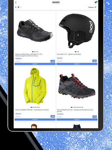 Besuche auch den SHOP, unseren Online-Shop für Sportausrüstung und Sportbekleidung der aktuellen Saison. Alle Produkte im SHOP sind auf Lager und können innerhalb von 48 Stunden versendet werden. Salomon, Asics, The North Face, Columbia, Mizuno... alle deine Lieblingsmarken und alle neuen Produkte sind direkt auf der App verfügbar !