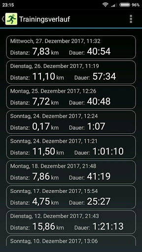 • Gesamtzeit Prognose - Berechnung der geschätzten Gesamtzeit nach der bereits gelaufenen Entfernung und der aktuellen Pace.