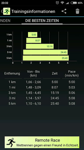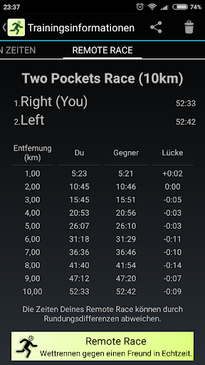 • Remote Race - Laufe ein Rennen mit einem Freund, der weit entfernt wohnt. Die Verlaufsmeldungen erfolgen in Echtzeit.