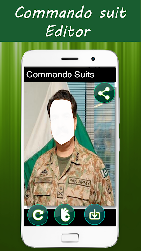 Pak army dress remain very gorgeous for everybody even for foreigners, people like being commando officers and in their love people can easily change pictures of anybody with army dresses. Command army photo suit editor is very fascinating app to design your picture into frames for photo editing. You can bring certain changes according to your own mind whether you want your picture to look as you are in position of defending your country Pak at border in Pakistan army suit; you want your picture to look like in army training or in Pak army parade. So install this army suit editor impress other people and do enjoy the moments and comments from people.