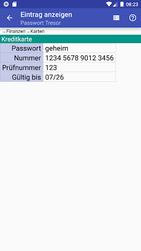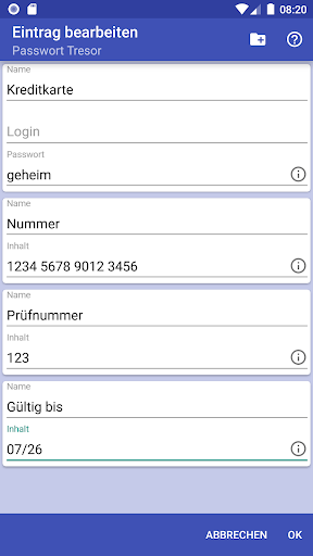 Wichtiger Hinweis: Wir stellen Sicherheit am aktuellen Stand der Technik zur Verfügung. Auf im Passwort Tresor gespeicherten Daten kann ausschließlich mit dem korrekten, vom Benutzer vergebenen Passwort zugegriffen werden - es gibt keine "Hintertüren". Leider wird diese App immer wieder von Benutzern, die ihr Passwort vergessen haben, schlecht bewertet, weil dann kein Zugriff auf die Daten mehr möglich ist - auch wir können dann nicht mehr weiterhelfen. Jedes andere Verhalten der App würde allerdings eine grobe Sicherheitslücke darstellen. Installieren Sie diese App also bitte nur, wenn Sie mit diesem im Sinne einer kompromisslosen Sicherheit nötigen Verhalten der App einverstanden sind!