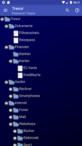 Mit dem Passwort Tresor können Sie alle Ihre Passwörter, Benutzernamen, Konten usw. an einer zentralen Stelle mit Hilfe eines einzigen Master-Passworts verwalten. Die Speicherung erfolgt ausschließlich auf Ihrem Gerät sicher verschlüsselt nach dem neuesten Stand der Technik (AES-256-Verschlüsselung).