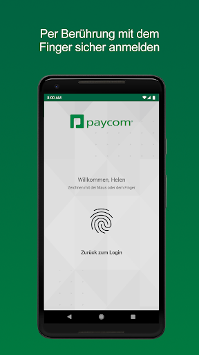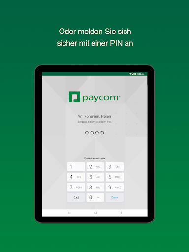 Die Paycom-App ist speziell für Mitarbeiter bestimmt, die Paycoms HR-Technologie bereits bei der Arbeit nutzen, und ermöglicht die Nutzung unserer Employee Self-Service-Technologie auf Ihrem Mobilgerät. Bitte beachten Sie, dass einige Funktionen von Employee Self-Service vom Paycom-Administrator Ihres Unternehmens aktiviert werden müssen. Wenn Sie Fragen zu diesen Funktionen haben, wenden Sie sich bitte an Ihre Personalabteilung.
