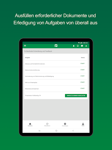 Hier können Sie jederzeit auf Ihre persönlichen Mitarbeiterdaten zugreifen, einschließlich vergangener und aktueller Arbeitgeberleistungen, Leistungsbeurteilungen, Ziele, Kontaktdaten und mehr. Mit unserer sicheren touch-ID-Anmeldung sind Ihre Daten buchstäblich im Handumdrehen verfügbar.