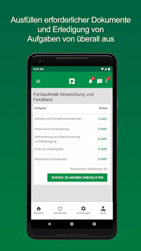 Verlorene Papierformulare und das Auswendiglernen der Vorschriften des Arbeitgebers gehören der Vergangenheit an. Die App ermöglicht unkompliziertes Anzeigen, elektronisches Unterzeichnen und Ausfüllen von Checklisten und Arbeitsformularen. Dokumente können auf einfache Weise gespeichert und abgerufen werden, wann immer Sie sie einsehen müssen.