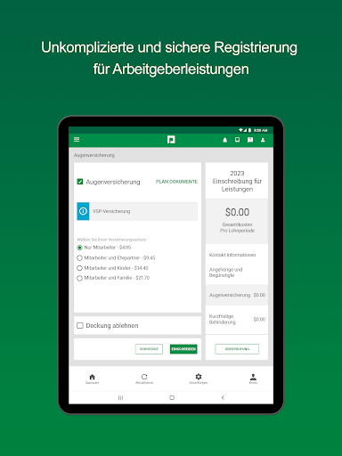 Das Anmelden für Arbeitgeberleistungen braucht nicht kompliziert zu sein. Sehen Sie sich die Leistungspläne Ihres Arbeitgebers an einem zentralen Ort an, mit der Option, die Kosten einzusehen, bevor Sie sich anmelden. Reichen Sie Ihre Auswahl ein und Sie sind fertig!
