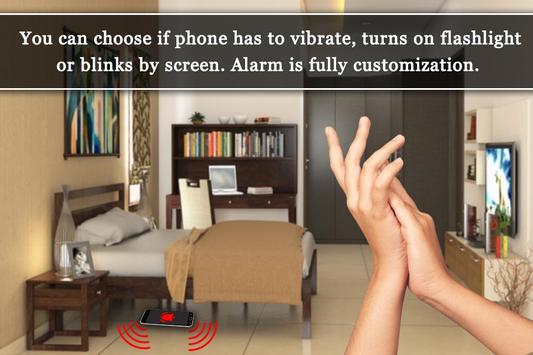 it runs the alarm. You can choose the alarm sound and volume. You can choose if phone has to vibrate, turns on flashlight or blinks by screen. Alarm is fully customization.
