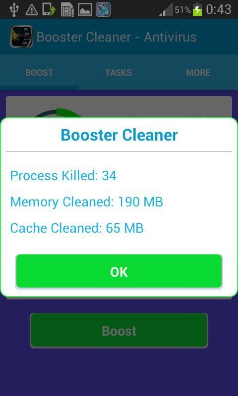 Into useful cleaning Optimizer & Antivirus Master, with the confidence of hundreds of millions of user requests, Booster Cleaner & Antivirus will help you control and optimize your phone memory space, junk (cache) files and the power of battery, as well as inspect the application permissions and secure your phone are viruses.