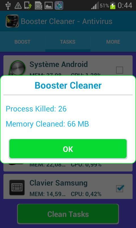 Process clean background, kill jobs and disable the auto-start applications, the Ram cleaning and increase the speed of your system.