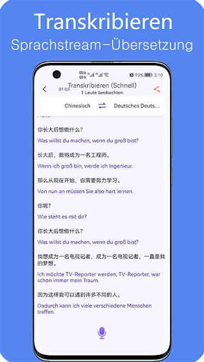 Es führt eine ununterbrochene Echtzeit-Übersetzung des gehörten Tons durch, und es werden zweisprachige Untertitel angezeigt, und es werden Untertitel-Skripte automatisch aufzeichnen und exportieren.