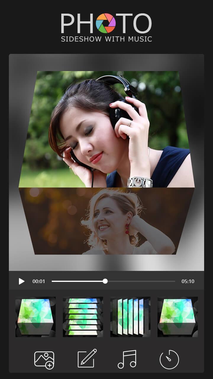 app through helps you to create fast and awesome slideshow with selected photos and music.