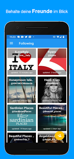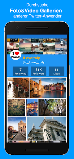 Melde dich mit deinem Twitter-Konto an und durchstöbere Millionen von Tweets mit Fotos und Videos. Alle in Tweets enthaltenen Fotos und Videos können heruntergeladen werden. Heruntergeladene Fotos und Videos können angezeigt werden, auch wenn keine Netzwerkverbindung verfügbar ist und auf Twitter nicht zugegriffen werden kann. Nach dem Herunterladen eines Fotos oder Videos können die entsprechenden Dateien entweder in der App oder in einer anderen Video- oder Foto-App auf dem Gerät angezeigt werden. Animierte Gif-Dateien werden ebenfalls unterstützt!