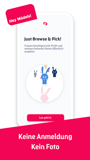 Pickable ist die einzige Appe, in der Frauen sofort zu swipen beginnen können, ohne ein Bild hochzuladen, eine Beschreibung hinzuzufügen oder auch nur eine Altersangabe machen zu müssen. Wenn du eine Frau bist, wird niemand erfahren, dass du auf Pickable bist.