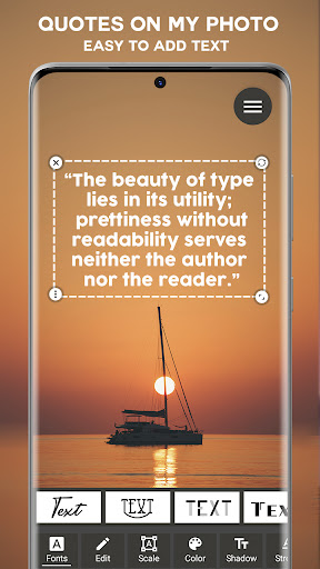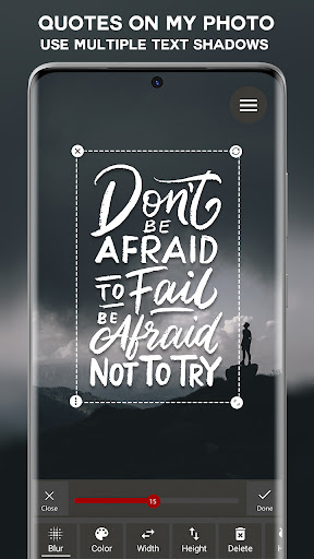 Now write text on photo using our Picture quotes and create app.You can save the quote design template that you have made by customizing. You can later change the text on photo and create images from that pattern and use them for your social media network like facebook, twitter, Whatsapp and instagram.