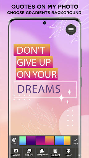 Write your own quotes like , love, emotions, attitude, life ,positive or many more. Make your quote for whatsapp, instagram and facebook with beautiful backgrounds. Quote Creator app has 1000 beautiful HD Pictures Quotes. We also added features of solid color and pitch as a background.
