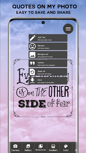 Quotes Creator is the best and easiest method to create and share your quotes with your friends and family. We can present Quotes Creator with customizing options such as background, text colors, text size, and fonts. Share your own thoughts or words with picture quotes. By using this app you can also write text on photo. Picture quotes creator app is best quotes editor to design social posts within in seconds.