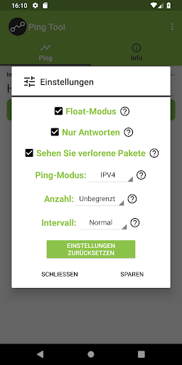 Verwenden Sie Ping in einem schwebenden Fenster.