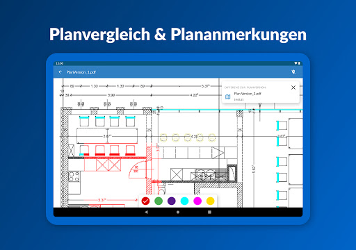 Neu hochgeladene Baupläne können in der Baustellen App sofort von allen Projektbeteiligten eingesehen werden. Damit arbeiten Sie und Ihre Kollegen auf der Baustelle immer mit den aktuellsten Bauplänen.