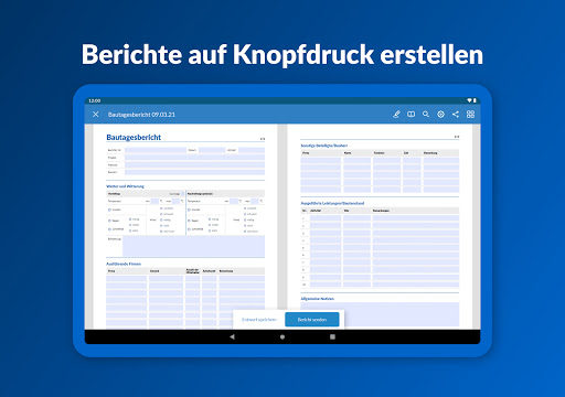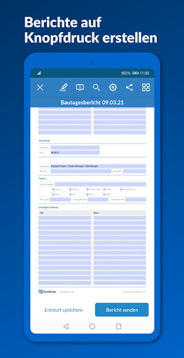 Erstellen Sie detaillierte und frei gestaltbare PDF-Berichte und exportieren Sie Ihr Bautagebuch, Ihre Bauzeichnung, Baupläne, Mängellisten oder ganze Abnahmeprotokolle einfach auf Knopfdruck. Profitieren Sie von einem effizienten Berichtswesen für Ihr Bauprojekt! Einfache und rasche Bauplanung für Architekten, Ingenieuren, Bauarbeiter und Co. auf der Baustelle und im Büro!