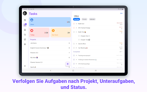 - Aufgaben hinzufügen, oder komplette Projekte mit Unteraufgaben erstellen