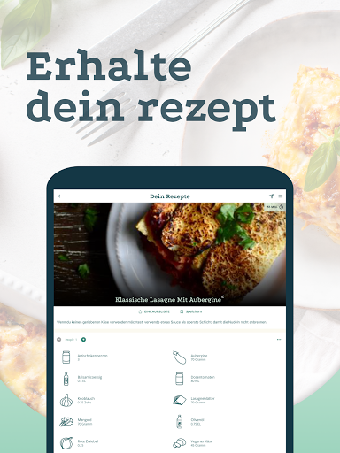 Die App wurde durch Zusammenarbeit von Profiköchen und Daten-Wissenschaftlern entwickelt. Sie macht das Kochen vegetarischer Rezepte super einfach und hilft dir, dich gesund zu ernähren. Leg los und koche leckere Rezepte für eine gesunde Ernährung!