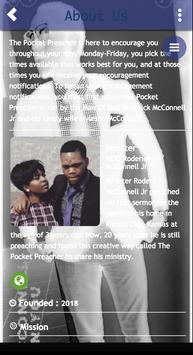 Pocket Preacher is ran by the ministry of the Man Of God Roderick McConnell Jr. You select the times available that you would like your encouragement sent to you, and encouragement will be sent to you at those times. You also will have the MOG Roderick McConnell's live ministry available.
