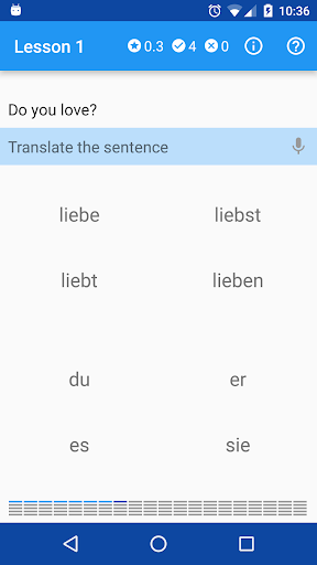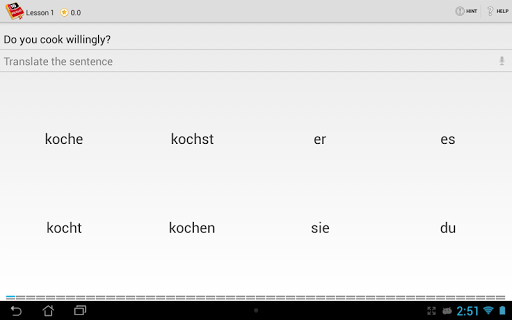 Während Sie den Satz erstellen, werden alle ausgewählten Wörter ausgesprochen. Dann wird die richtige Antwort laut gelesen.