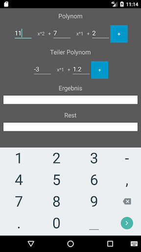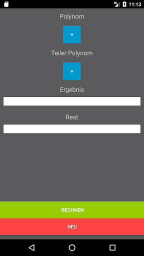 ----- Polynomdivision ----- - bis Grad 15! - einfache Eingabe und übersichtliche Ausgabe! - Polynomdivision über dem Körper Q! Für Fragen oder Vorschläge: philipp.hofer@aol.com
