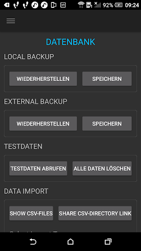• Sie können die Datenbank in der Dropbox™, Google Drive usw. speichern und wiederherstellen