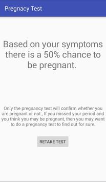 Answer a few question and determine if you are pregnant or not , the questions are highly accurate , If you think you are having a baby you can download this simple application and answer the questionnaire.