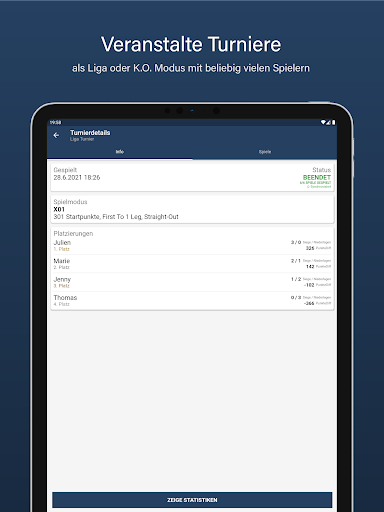 Dartspiele verfolgen, Statistiken anschauen, Turniere veranstalten und Online gegen andere Spielen. Alles kostenlos und automatisch über alle Plattformen synchronisiert.