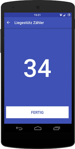 Eine App mit der Du sehr einfach deine Liegestütze zählen kannst. Falls dein Gerät einen Näherungssensor besitzt, musst Du zum Zählen deiner Liegestütze das Display nicht mal berühren. Ganz einfach das Gerät vor den Kopf legen und trainieren. Probiere es gleich aus!