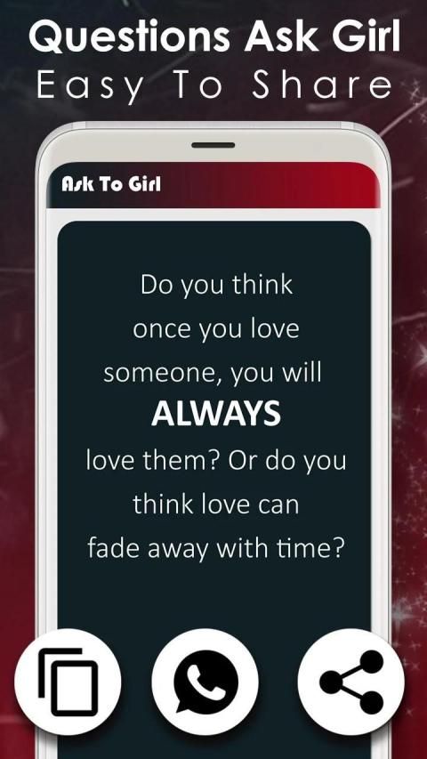 Question Ask To Girlfriend is provided many girlfriend question. This application developed only entertainment purpose. Taking her on dates will only get you so far. One of the best ways to start a conversation or keep it moving is with the right questions. But you need a list of good questions to ask your girlfriend if you want her to find you interesting.