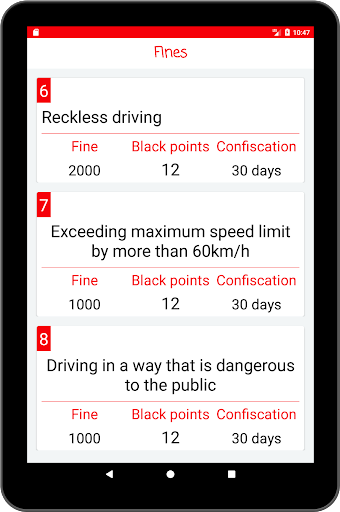 Es gibt nicht nur 35 Fragen zum Üben.Diese RTA -Theorie -Test -App enthält mehr als 600 Fragen und Antworten.Alle diese Fragen werden aus Dubai (VAE) leichte Kraftfahrzeughandbuch extrahiert.Diese Fragen sind in vier Abschnitte unterteilt, damit Sie mit Leichtigkeit üben können.Auch Signaltestfragen und Antworten sind enthalten.Wir haben alle Schritte, die Sie unternehmen müssen, um Ihren Führerschein auszuführen.Es gibt auch vollständige Details zu Bußgeldern und Strafen.