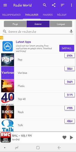 Radio World (Radio für Mobile) ist eine App zum Hören von Radiosender im Internet. Mit Radio World können Sie verschiedene Genres wie Musik, Diskussionen, Nachrichten, Shows, Konzerte und andere Vielfalt von Programmen anhören und genießen, die von verschiedenen Sendern im Internet zur Verfügung gestellt werden.