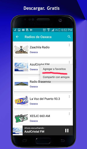 Die sehr einfache Anwendung wird dauerhaft aktualisiert, wenn Sie möchten, dass wir einige Funkgeräte hinzufügen möchten, zögern Sie nicht, uns an appsgratis365@gmail.com zu schreiben. In unserem kommenden Kamota, auf was wartest du? ... Klicken Sie auf Download und Radios de Oaxaca.